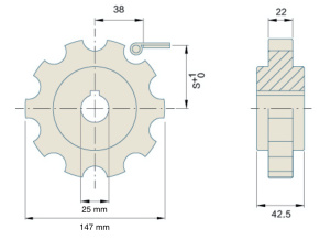 Приводная звездочка для цепи 2350PW-406 12 зубьев, диаметр 146.3 мм, отверстие под трубу 25 мм