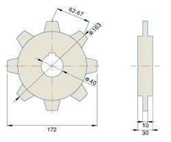 Холостая (нятажная) звездочка для цепи 2350PW-327, диаметр 117.0 мм, отверстие под трубу 25 мм